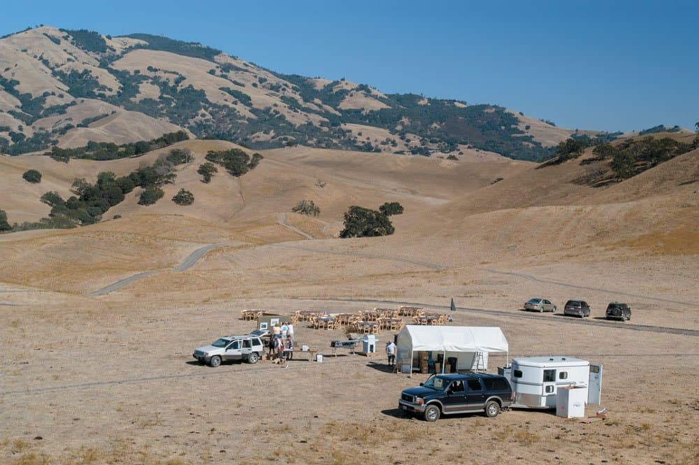 The first Moonlight on the Mountain was held at China Wall within Mount Diablo State Park in 2002, in the same location where it continues to be held today. It was a relaxing, intimate evening and was attended by just 120 people. Guests enjoyed a four-course meal and wine around their dining tables, illuminated only by battery lanterns and the light of the full moon. The dinner was accompanied by an acoustic string quartet ensemble. It was quite the undertaking for a small staff and group of volunteers to arrange everything, from planning the event to working the setup and breakdown of the affair. All in all, the first Moonlight gathering was a great success and inspired us to continue to grow.